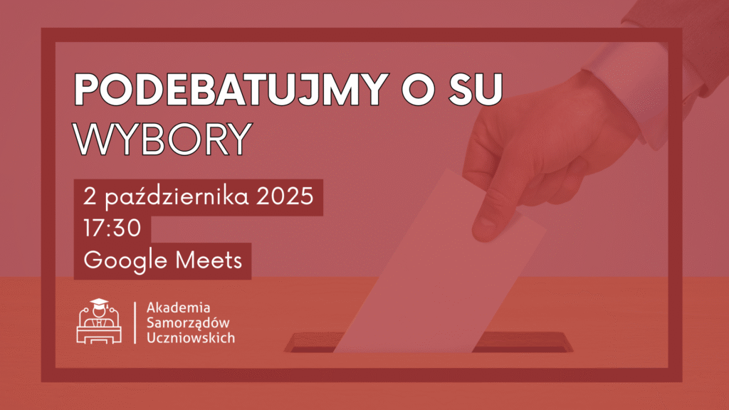 Pierwsze spotkanie z cyklu „Podebatujmy o SU” poświęcone będzie wyborom do samorządów uczniowskich. Wspólnie z członkami SU, kandydatami, a także opiekunami samorządów zastanowimy się:
